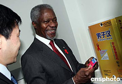 圖:安南參觀北京艾滋病咨詢監(jiān)測點