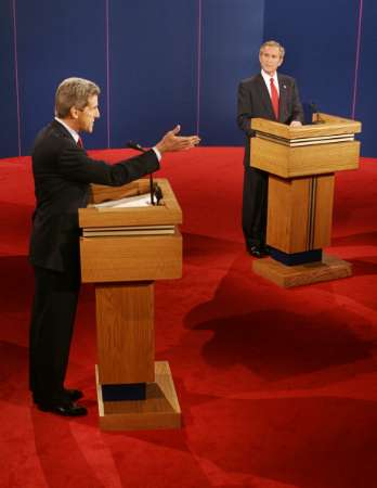中新網(wǎng)10月14日電 美國總統(tǒng)候選人第三場辯論于美東時間13日晚9點在亞利桑那州立大學(xué)展開。由于是投票日前的最后一場辯論,布什與克里都將全力抓住這次給全國選民留下深刻印象、宣講施政方針、全面攻擊對方的最重要機會。