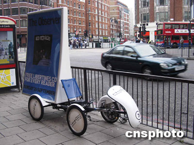 倫敦街頭一輛造型奇異的、用于打廣告的自行車。余瑞冬 攝