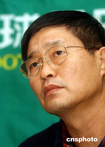北京國(guó)安足球俱樂部有限責(zé)任公司首席律師王玉梅(左)在會(huì)上宣布國(guó)安正式啟動(dòng)向中國(guó)足協(xié)的申訴程序,總經(jīng)理?xiàng)钭嫖洌ㄓ遥┫蛎襟w傳達(dá)了俱樂部董事會(huì)決定用法律手段解決與中國(guó)足協(xié)矛盾的決心。