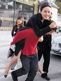 中新網(wǎng)10月16日電 冷若冰山的王菲,在巴黎街頭突一反常態(tài),大庭廣眾下向設計師撒嬌,非要他背著她繞街跑一圈不可,兩度表現(xiàn)失常。