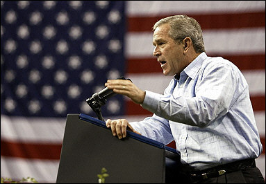 布什總統(tǒng)周六在佛羅里達(dá)州向支持者發(fā)表演說,他抨擊了克里在稅收政策上的記錄,試圖激起選民對(duì)于民主黨執(zhí)政期間稅負(fù)過重的擔(dān)憂。