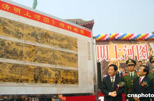 | 圖:《清明上河圖》特種郵票在河南開(kāi)封首發(fā)