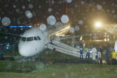 中新社臺(tái)北十月十九日電 (記者 張明新)臺(tái)灣復(fù)興航空一架由臺(tái)南飛往臺(tái)北的飛機(jī)昨天晚上在松山機(jī)場降落時(shí),不慎滑出跑道,到目前為止,機(jī)場還未重開。