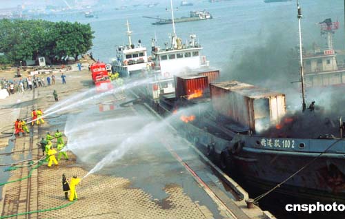 圖:廣州港警方演練撲救集裝箱危險(xiǎn)品爆炸事故
