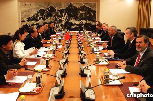 圖:李肇星與美國(guó)國(guó)務(wù)卿鮑威爾會(huì)談
