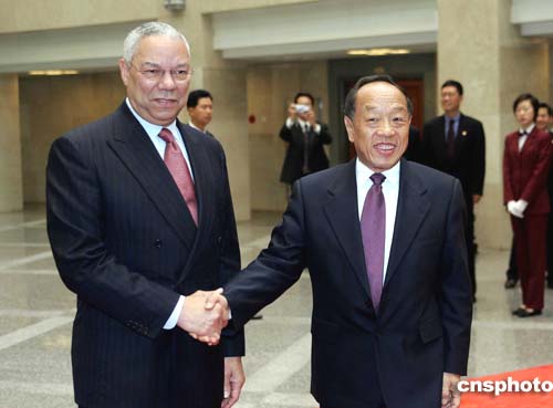 中國(guó)國(guó)家主席胡錦濤會(huì)見美國(guó)國(guó)務(wù)卿鮑威爾