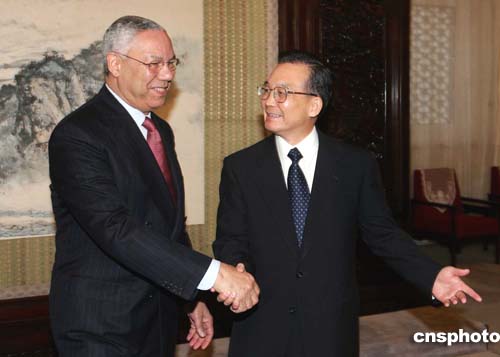 溫家寶會見鮑威爾 稱領導人會晤有助于雙邊關系