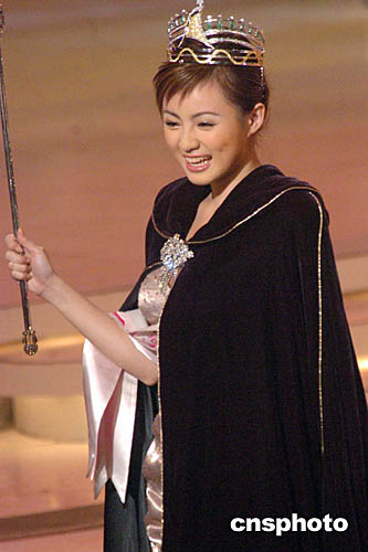 2004亞洲小姐競(jìng)選總決賽,于十月二十四日晚在香港演藝學(xué)院舉行,來(lái)自杭州的佳麗呂晶晶奪得桂冠后,將權(quán)杖任意揮舞有失莊重。中新社記者:錢(qián)興強(qiáng)