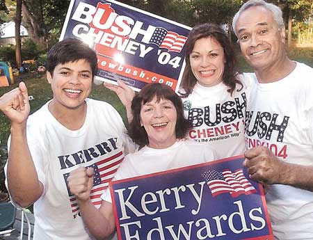 據(jù)多項民調(diào)顯示,布什克里兩人贏得今年美國總統(tǒng)大選的機會各占一半。這一結(jié)論不僅在丹尼斯的家里表現(xiàn)得一清二楚,在整個威斯康星州也十分明顯:支持自己偏愛一方的當?shù)剡x民分別乘車,前往選舉辦公室登記選民身份。