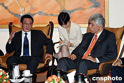 吳邦國(guó)委員長(zhǎng)與聯(lián)合國(guó)人居署副執(zhí)行主任丹尼爾·比奧交談