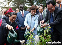 吳邦國(guó)委員長(zhǎng)在聯(lián)合國(guó)駐內(nèi)羅畢總部花園種下合作之樹