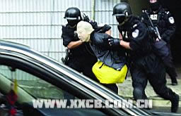 “我要裝滿油的汽車,把我送到安全地點!”“歹徒”用槍抵住“人質”的頭,跑上三樓,從窗戶內探出身子大叫:“不然我殺了他!”追捕小組一邊穩(wěn)定其情緒,一邊針對現(xiàn)場情況制定了強攻方案。3名特警從5樓貼墻緩緩而下,此時“歹徒”叫囂就要對“人質”下手,中間的特警看準時機,開槍擊斃了一名還在叫囂的“歹徒”。兩旁的特警乘機跳入房間,將另一名“歹徒”控制住。戰(zhàn)斗結束,“歹徒”一死一捕,“人質”被安全救出。