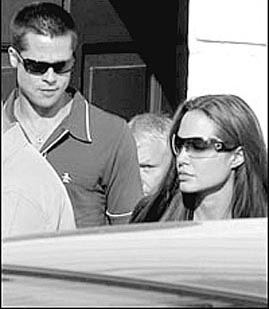中新網(wǎng)11月3日電 好萊塢一號(hào)酷男布拉德·彼特與性感美女安吉麗娜·朱莉之間的緋聞?dòng)謧鞒鲂侣。?jù)山西晚報(bào)報(bào)道,近日記者們終于抓到了彼特和朱莉之間眼神傳情的證據(jù),并說(shuō)這幾張照片足以顯示,彼特不僅沒(méi)有盡力與朱莉劃清界線,反而他的舉動(dòng)更讓人心生疑問(wèn)。