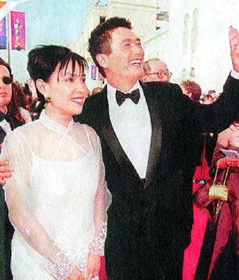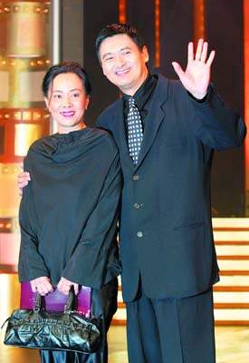 2002年,發(fā)哥夫婦在臺(tái)灣出席金馬獎(jiǎng)?lì)C獎(jiǎng)典禮,發(fā)嫂以一襲黑色長(zhǎng)裙很好地掩蓋了發(fā)福的身形。
