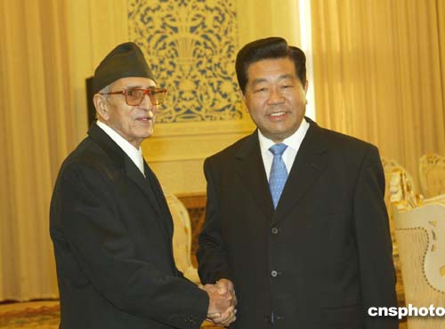 圖:賈慶林會(huì)見尼泊爾大會(huì)黨主席