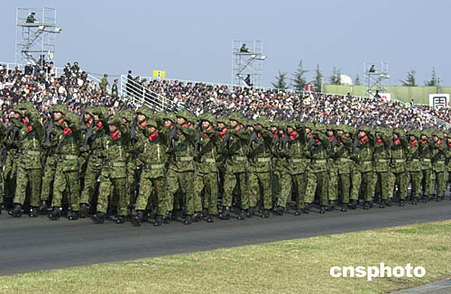 日本陸?兆孕l(wèi)隊十一月七日在東京附近的基地聯(lián)合舉行其成立五十周年閱兵式。作者:王健