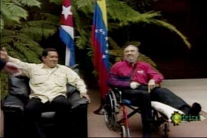 報(bào)道稱,卡斯特羅與查韋斯在上星期六晚上舉行了長達(dá)八個(gè)小時(shí)的會(huì)談——這對(duì)于一個(gè)已經(jīng)78歲高齡的老人來說非常不易,考慮到他還剛剛摔了一跤,就更有點(diǎn)難能可貴了。電視臺(tái)的畫面顯示,卡斯特羅坐在輪椅上,腿打了石膏,胳膊也用吊帶吊在脖子上。此前,卡斯特羅在不慎摔倒后只在電視上出現(xiàn)過一次。當(dāng)時(shí)電視臺(tái)只播出他胸部以上部分的鏡頭。
