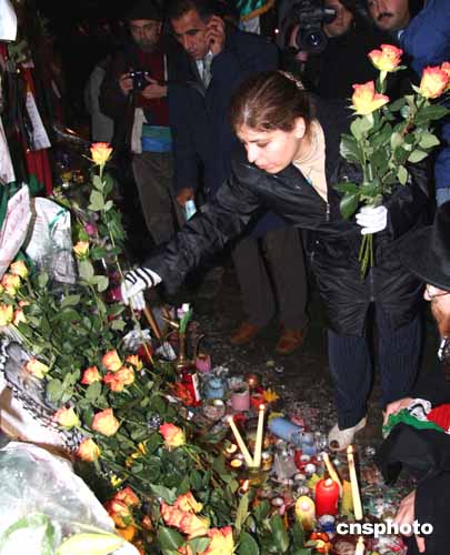 圖:人們在巴黎貝爾西醫(yī)院外為阿拉法特獻花