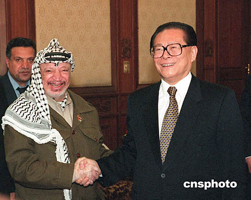 資料照片:江澤民會見阿拉法特