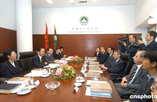 十五日,中國首席大法官、最高人民法院院長蕭揚一行與澳門終審法院院長舉行工作座談,就內地人民法院與澳門特別行政區(qū)法院關于《內地與澳門就民商事案件相互委托送達司法文書和調取證據(jù)的安排》等執(zhí)行情況交換了意見。作者:梁永強