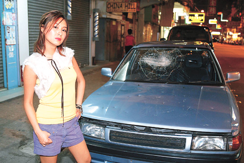 原本導(dǎo)演是要求阿茵執(zhí)起一個(gè)大鐵錘大力敲車(chē),但因她不夠力拿起大鐵錘,才改為拿壘球棍。而當(dāng)日他們乃在車(chē)房取景,最初阿茵以為車(chē)房地方必定又濕又熱,豈料有冷氣設(shè)備,所以拍攝并不是想象般辛苦。到拍攝時(shí),阿茵因沒(méi)氣力打毀車(chē)子,便找來(lái)兩位朋友幫手,而他們十分投入,甚至連玻璃都打破,幸而四濺的碎玻璃并沒(méi)弄傷其它人。阿茵說(shuō):“其實(shí)我都想趁打爛車(chē)子時(shí)乘機(jī)發(fā)泄一下,可是自己氣力不足,想發(fā)泄也不能!