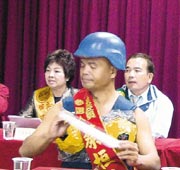 云林縣“立委”選舉號次抽簽,奇裝異服搞花招,鋼盔與紙制的大胸罩都上出場。(以上圖片均轉(zhuǎn)自臺灣《聯(lián)合報》圖)