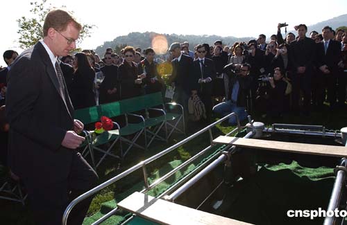 當地時間十一月十九日,美華裔女作家張純如安葬在加州洛斯阿托斯市的“天堂之門”墓園。她的丈夫、父母、弟弟以及眾多仰慕者一起為她送行。作者:陳鋼