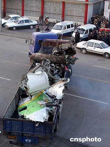 圖:包頭空難飛機(jī)殘骸運(yùn)離現(xiàn)場(chǎng)