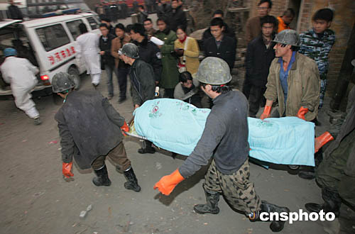 截止二零零四年十一月二十三日十七時,“11.20”河北沙河礦難遇難礦工已達(dá)六十一人,另有四人下落不明,搜救工作仍在進(jìn)行之中。中新社記者:武仲林
