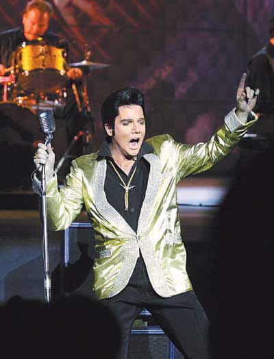 演出一開始就把觀眾帶回到上世紀(jì),帶到了“貓王”故居門前,很多歌迷到那里憑吊。馬丁·方亭一出場就贏得了一片掌聲,他的確是太像“貓王”了,無論是化妝、服飾,還是他的歌喉、舞蹈,都幾乎可以亂真。