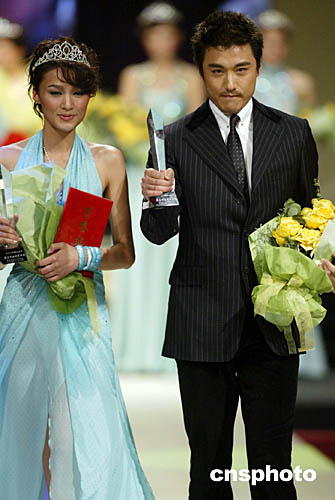 中國國際時裝周二零零四年度最佳職業(yè)模特獎十一月二十五日晚在北京揭曉,胡兵(右)和韋杰獲此殊榮。中新社記者:盛佳鵬