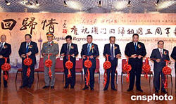 由人民日?qǐng)?bào)與澳門日?qǐng)?bào)合辦的“回歸情——慶祝澳門回歸祖國(guó)五周年書畫展”,二十六日下午在澳門旅游活動(dòng)中心隆重揭幕,行政長(zhǎng)官何厚鏵出席并參觀了書畫展。作者:梁永強(qiáng)