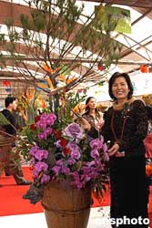 十一月二十八日,在福建漳州舉辦的第六屆海峽兩岸花卉博覽會上,臺灣中華花藝設(shè)計協(xié)會總會理事、著名插花表演藝術(shù)家陳好女士現(xiàn)場為觀眾插了一盆“龍鳳吉祥”的花藝盆景,博得觀眾的喝彩。作者:王東明