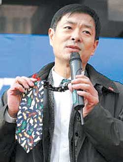 演講行將結(jié)束時,復旦學子對濮存昕的安全套領(lǐng)帶興趣漸漸濃厚起來,主持人代表復旦大學紅十字會向他“索要”那條安全套領(lǐng)帶,不過由于這條領(lǐng)帶是他從泰國帶回來的珍藏品,不便贈人,濮存昕只得改送一只印有他本人卡通形象的安全套。