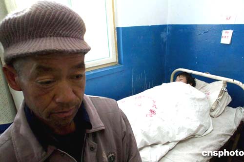 11月29日上午,在陜西銅川礦務局陳家山煤礦瓦斯爆炸中幸免遇難的礦工在礦務局醫(yī)院接受治療。作者:張俊杰