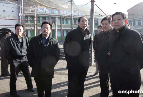昨晚,國務(wù)院副秘書長尤權(quán)率領(lǐng)工作組抵達(dá)該礦。今天一早,陜西省代省長陳德銘與工作組成員來到發(fā)生事故的礦井坑道口,向正在緊張搶險(xiǎn)的搶險(xiǎn)隊(duì)員轉(zhuǎn)達(dá)了國家主席胡錦濤的親切問候,要求大家在全力積極搶救的同時(shí),還要避免事故的再次發(fā)生。