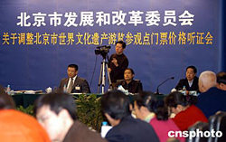 頤和園、故宮、八達(dá)嶺長城、天壇、定陵、長陵六處北京市世界文化遺產(chǎn)門票價格擬調(diào)整,十一月三十日該六處游覽參觀點門票價格調(diào)整聽證會在京舉行,北京市發(fā)展和改革委員會官員、專家學(xué)者等出席聽證會,市民代表旁聽。其中,作為北京市民晨練休閑的場所,頤和園、天壇的門票上漲幅度最為旁聽市民代表關(guān)注。作者:徐曦弋