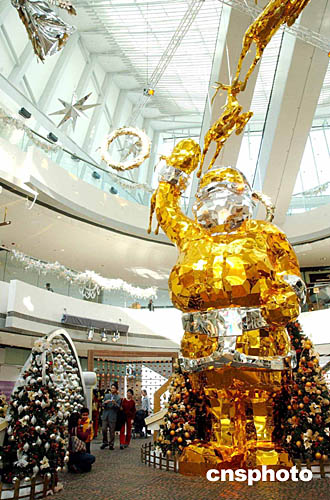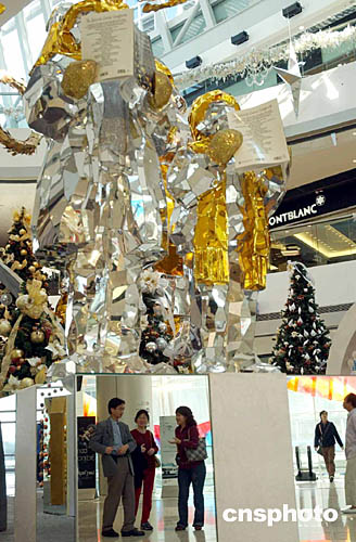 香港最高的國(guó)際金融中心商場(chǎng)在圣誕節(jié)前夕,布置一組美輪美奐的水晶玻璃圣誕裝飾,令顧客的晶瑩剔透的圣誕氣氛中流連忘返。作者:洪少葵