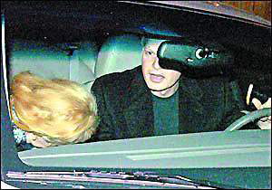 當晚,身著藍色毛衣和黑色休閑外套的史蒂夫用他的林肯轎車載著迷人的妮可前往他的錄音棚,車子一到達,妮可就迫不及待地鉆進去。妮可系著一條花絲巾,穿著一件黑色西服上衣,下車前,妮可不忘左張右望,看了又看。發(fā)現(xiàn)有人拍照時,機警地低下頭并用手遮臉,但神情并不慌張,臉上倒掛著甜蜜的笑。一路上兩人談?wù)勑π,廝守3個小時后,史蒂夫才送妮可回家,兩人牽手下車,朝妮可家中走去。