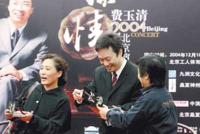 中新網(wǎng)12月9日電 據(jù)北京娛樂信報(bào)報(bào)道,明(10)天晚上,“款款深情——費(fèi)玉清2004北京演唱會(huì)”即將在工人體育館上演,費(fèi)玉清將現(xiàn)場(chǎng)演唱近50首懷舊金曲。從上世紀(jì)30年代的《夜來香》等直到80年代末的《船歌》,費(fèi)玉清演唱會(huì)可以說是對(duì)大半個(gè)世紀(jì)來國(guó)語流行曲的一次最全面的回顧。在年底一系列的演唱會(huì)中,這次個(gè)唱被認(rèn)為是一場(chǎng)“可以坐著聽的演唱會(huì)”,如果對(duì)照著國(guó)語流行音樂跌宕起伏的發(fā)展欣賞費(fèi)玉清的演唱,這場(chǎng)個(gè)唱確實(shí)也多了一層坐看潮起潮落的韻味。