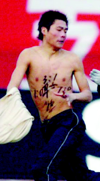 昨天下午,在首屆中超杯決賽中,擁有主場之利的魯能泰山隊(duì)?wèi){借舒暢和王超的進(jìn)球,2:0擊敗聯(lián)賽冠軍深圳健力寶隊(duì),如愿將中超杯冠軍獎(jiǎng)杯留在了濟(jì)南。在王超打入第二球后,賽場上出現(xiàn)了戲劇性一幕,一名赤膊的年輕球迷突然沖進(jìn)賽場,上演了國內(nèi)綠茵場的首次“裸奔”鬧劇。