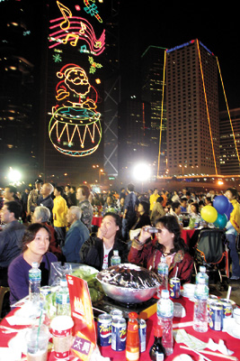中新網(wǎng)12月13日電 據(jù)香港大公報(bào)報(bào)道,第二屆“萬人盆菜宴”昨日在添馬艦舉行,繼去年舊啟德機(jī)場(chǎng)筵開六百六十席,打破全球最多人同一地點(diǎn)吃盆菜的紀(jì)錄后,今年更突破八百席大關(guān),舉行了一場(chǎng)名副其實(shí)的萬人盛宴。活動(dòng)籌委會(huì)主席黃家和希望能將這個(gè)活動(dòng)發(fā)揚(yáng)光大,打造成香港每年一度的盛事。
