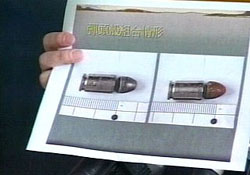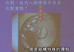 08.28 李昌鈺鑒識報告出爐,調(diào)查報告發(fā)現(xiàn)銅彈頭底部有磨痕,可能是由工廠機具所打造,鉛彈頭上則有藍、白色纖維及血跡反應,兩槍很有可能從兩把槍支分別射擊,但可能是同一支槍管鋸開,改造成兩把槍支。