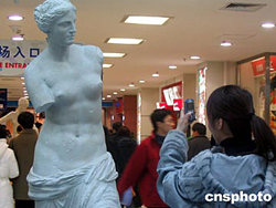 2004年12月13日,84件法國盧浮宮雕塑藝術品的復制品在北京免費展示。展覽在家樂福的中關村廣場舉辦,為期8天,為北京的普通消費者增加一個近距離了解法國國寶的機會。作者:張碩