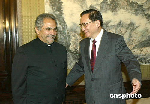 中國(guó)國(guó)務(wù)委員唐家璇十二月十四日在北京中南海會(huì)見(jiàn)來(lái)訪的東帝汶外交部長(zhǎng)奧爾塔。中新社記者:史利