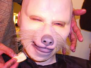 盡管對(duì)于此次“老狼”的形象,張學(xué)友十分滿(mǎn)意。但一提起制作過(guò)程,學(xué)友立即表示痛苦不堪、吃盡了苦頭。在用石膏粉做倒模的將近一天時(shí)間里,學(xué)友不能說(shuō)話、不能吃飯、不能做任何表情與動(dòng)作,在做鼻部模型時(shí)甚至不能呼吸,一整天僅靠一根吸管不時(shí)地喝水。如果僅是如此學(xué)友表示還能接受,最痛苦的是由于倒模、試妝過(guò)程要求精細(xì),敷在臉上的化學(xué)物品與皮膚接觸時(shí)間太長(zhǎng),在制作完畢之后,學(xué)友面部因過(guò)敏大面積紅腫,許多天后才慢慢消退。說(shuō)起這件事,學(xué)友笑稱(chēng),“幸虧這個(gè)造型不是每次上臺(tái)都要做,不然每次都要過(guò)敏腫起來(lái),以后演老狼根本不用化妝了!