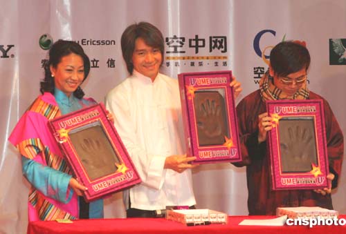 十二月十八日晚,從香港巨星周星馳執(zhí)導兼主演的賀歲影片《功夫》在上海首映,圖為周星馳與《功夫》演藝人員在上海留手印祝賀首映成功。作者:潘索菲