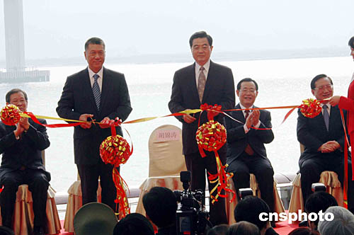 中共中央總書記、國(guó)家主席、中央軍委主席胡錦濤,十九日下午在澳門為西灣大橋落成剪彩。中新社記者:宋吉河