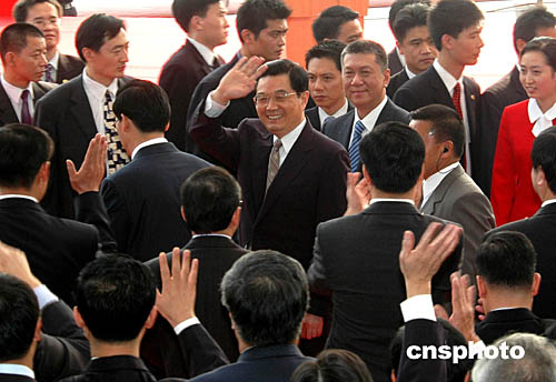 中共中央總書記、國(guó)家主席、中央軍委主席胡錦濤,十九日下午在澳門西灣大橋落成典禮儀式上,向參加儀式的澳門各界人士招手致意。